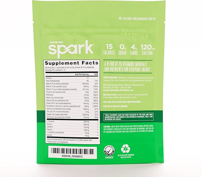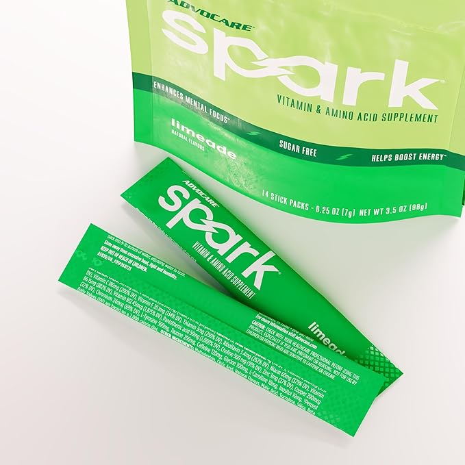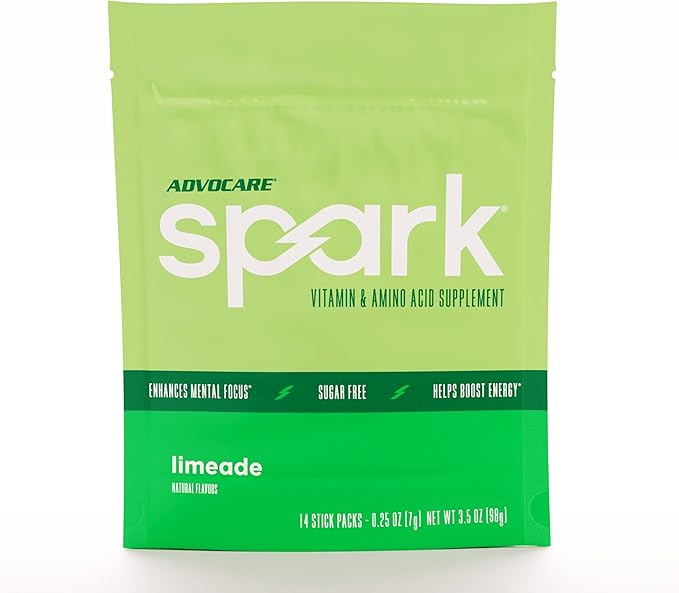 AdvoCare Spark Vitamin & Amino Acid Supplement - Focus & Energy Drink Powder Mix with Vitamin A, B-6, C & E - Also Includes L-Carnitine & L-Tyrosine - Limeade, 14 Stick Packs