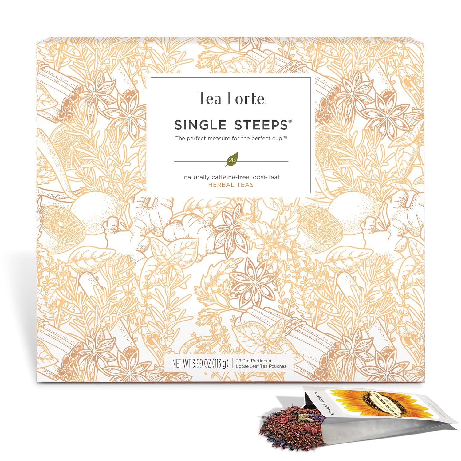 Tea Forte Herbal Tea Assortment Single Steeps Loose Leaf Premium Tea Gift Set Sampler, 28 Count, 2 of Each Assorted Blends Pre-Portioned Single Serve Pouches, Steeps 12 oz