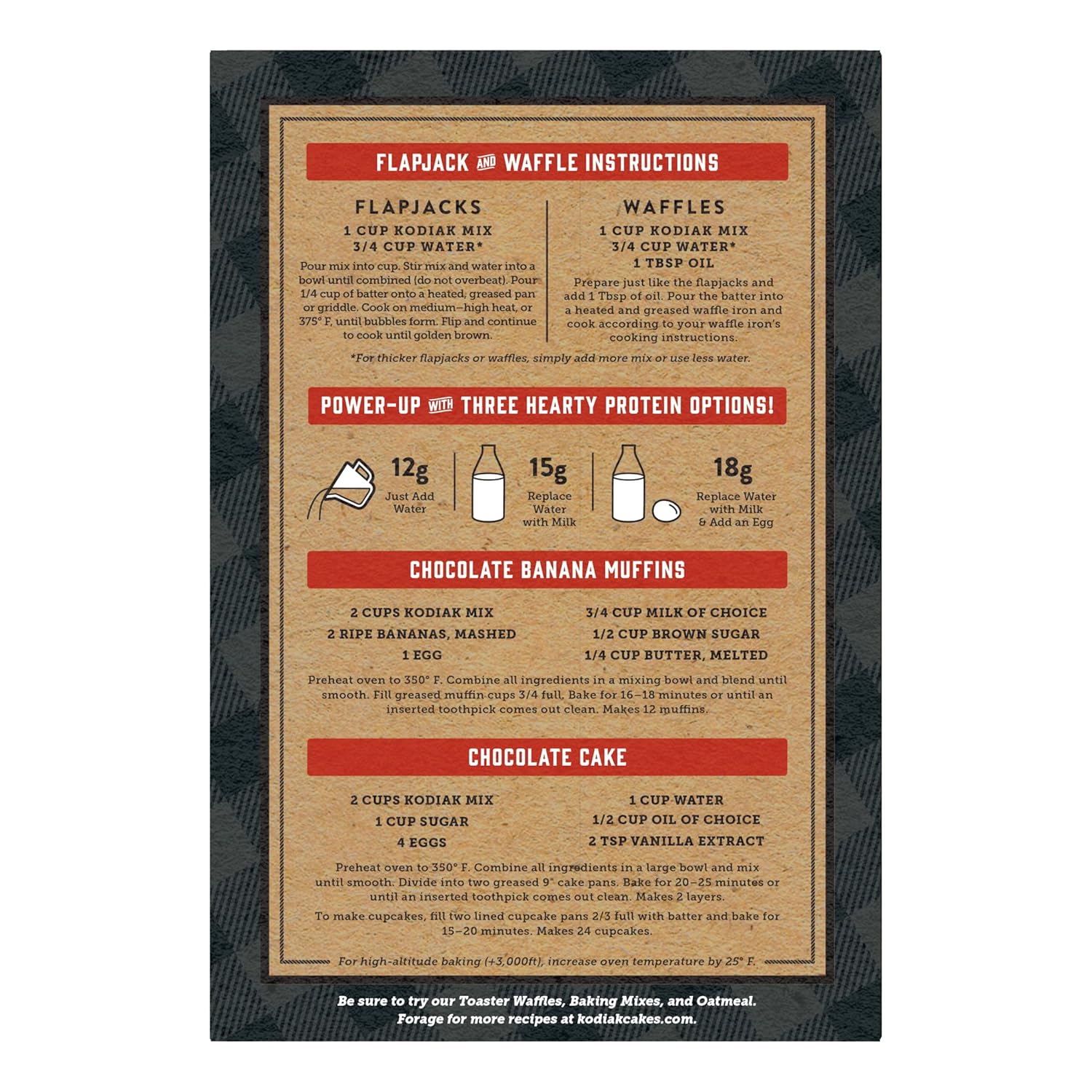 - You will receive a Pack of (6) Kodiak Cakes Power Cakes, Non GMO Protein Pancake, Flapjack and Waffle Mix, Dark Chocolate, 18 Ounce