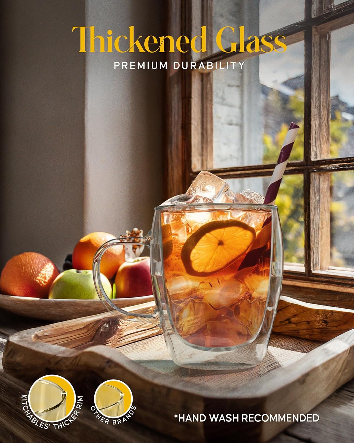 - Enjoy Hot or Cold Drinks Even Longer - Crafted with precision, our double walled glass coffee mugs ensures your hot drinks stay hot and your cold drinks stay cold, allowing you to relish every sip without compromise. Say hello to extended enjoyment with these clear glass coffee mugs that are as versatile as they are stylish. ¡Disfruta de tus bebidas calientes o frías por más tiempo con estas tazas para café de vidrio transparente de Kitchables!