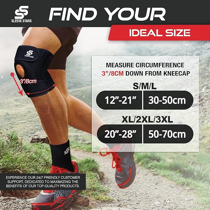 • ✅ Quality meets comfort: This knee brace with hole is designed with flexible, breathable, and moisture-wicking fabric that makes it comfortable to wear for extended periods. Significant compression highly depends on ordering the right size of these knee braces for knee pain for men one size fits all. Please see the Sizing Chart before placing your order. An extra large knee brace is also available!