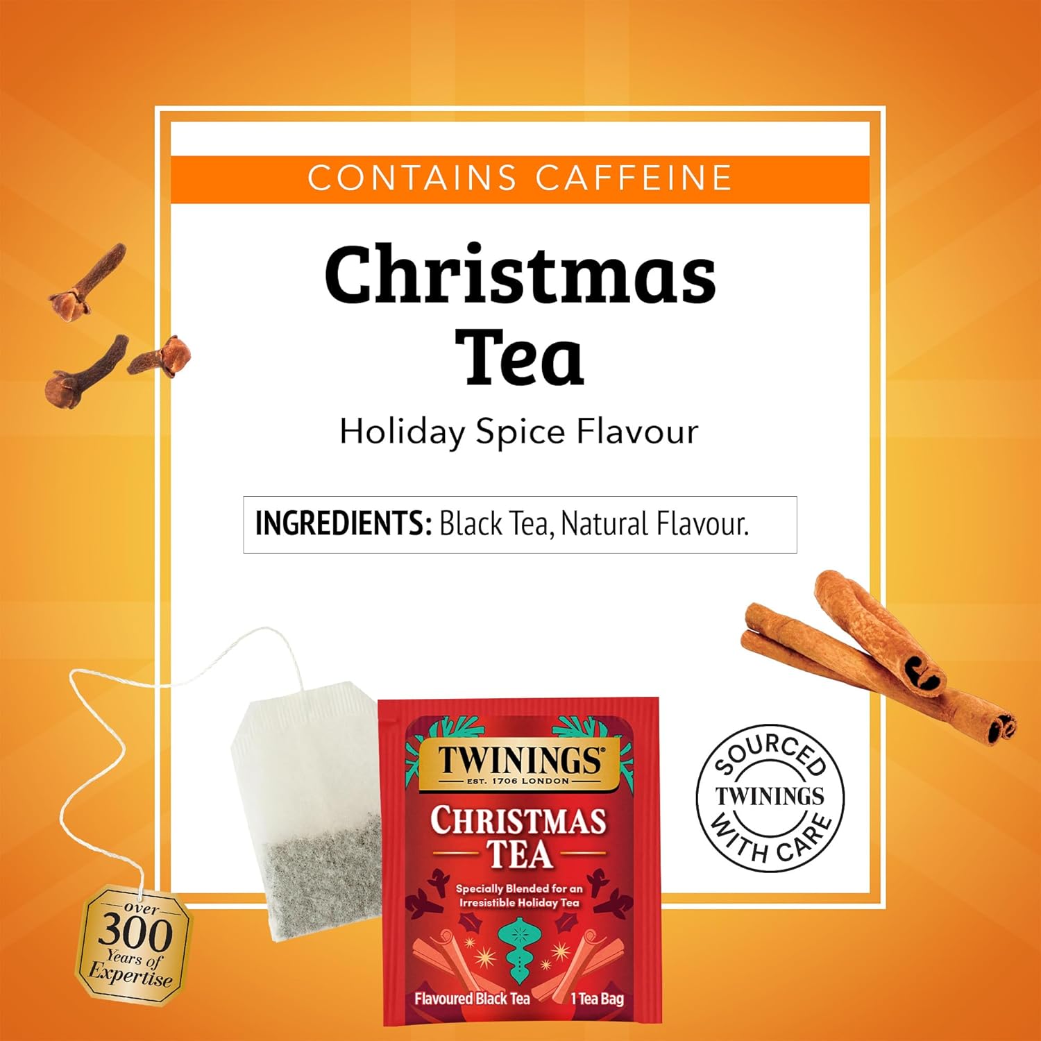 - LIMITED EDITION: Twinings Christmas Tea is an aromatic blend of the finest black teas with traditional flavours of cinnamon and clove.