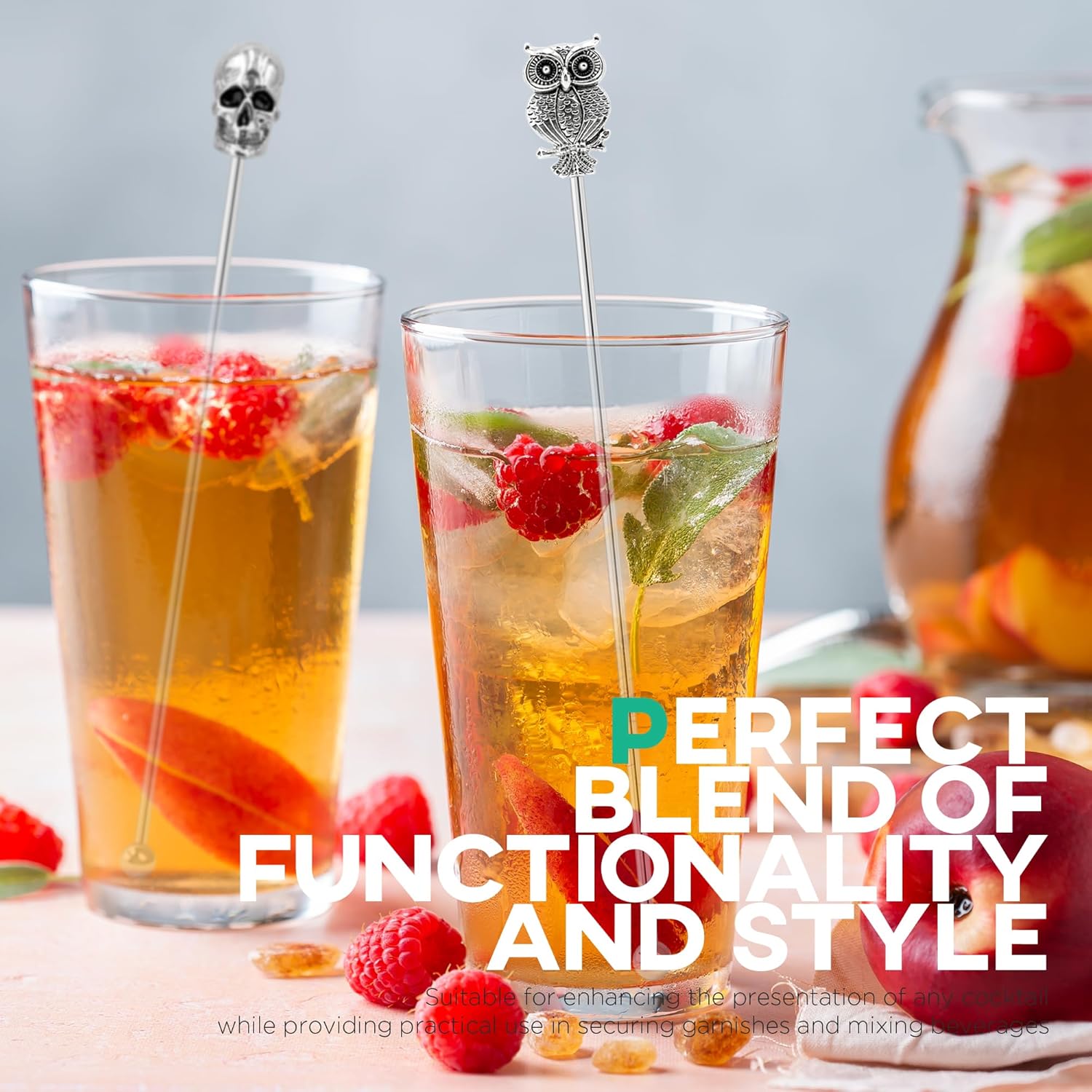 - OPERATION: The stirrer's head is adorned with an animal decoration, not only adds a touch of character to your barware but also serves as a functional handle, making it easy to maneuver and control the rod with precision. The size and weight of this mixing rod are just right, by gently twirling the swizzle stick, you can effectively blend the flavors without disturbing the ice or garnishes.