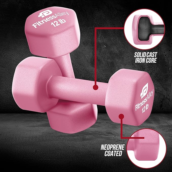 Neoprene Coated Workout Dumbbells set of 2 – Anti Roll, Non Slip with Smooth Grip Fitness & Exercise Dumbbells – Hexagon Shaped Hand Weights for Women & Men – Best Choice for Gyms & home use