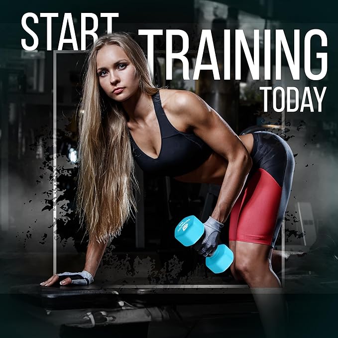 Neoprene Workout Dumbbells - Non Slip, Anti Roll Exercise & Fitness Dumbbells Combo - Hex Shaped Hand weights for Men & Women - Ideal for Home and Gyms training