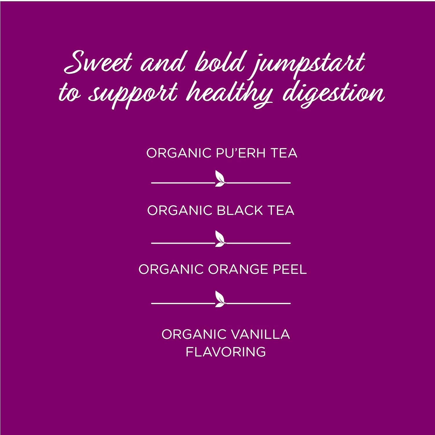 The Tea Spot Organic Morning Mojo Black Tea with Vanilla and Citrus for Energy | Breakfast Blend of Pu'erh Tea, Black Tea, Orange Peel and Vanilla Flavor | 15 Tea Bags