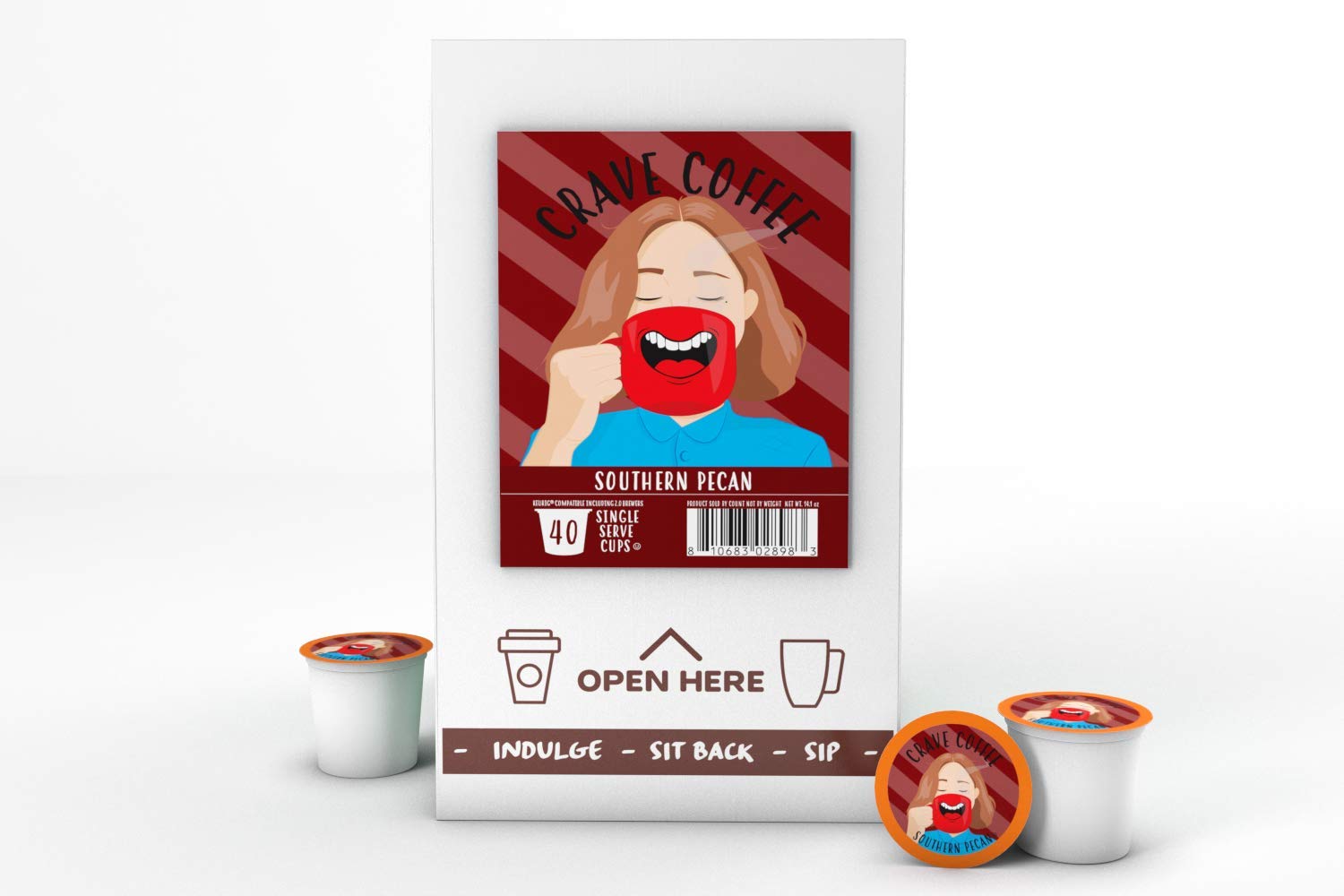 Crave Beverages Flavored Coffee Pods, Compatible with 2 K-Cup Brewers, Southern Pecan, 40 Count
