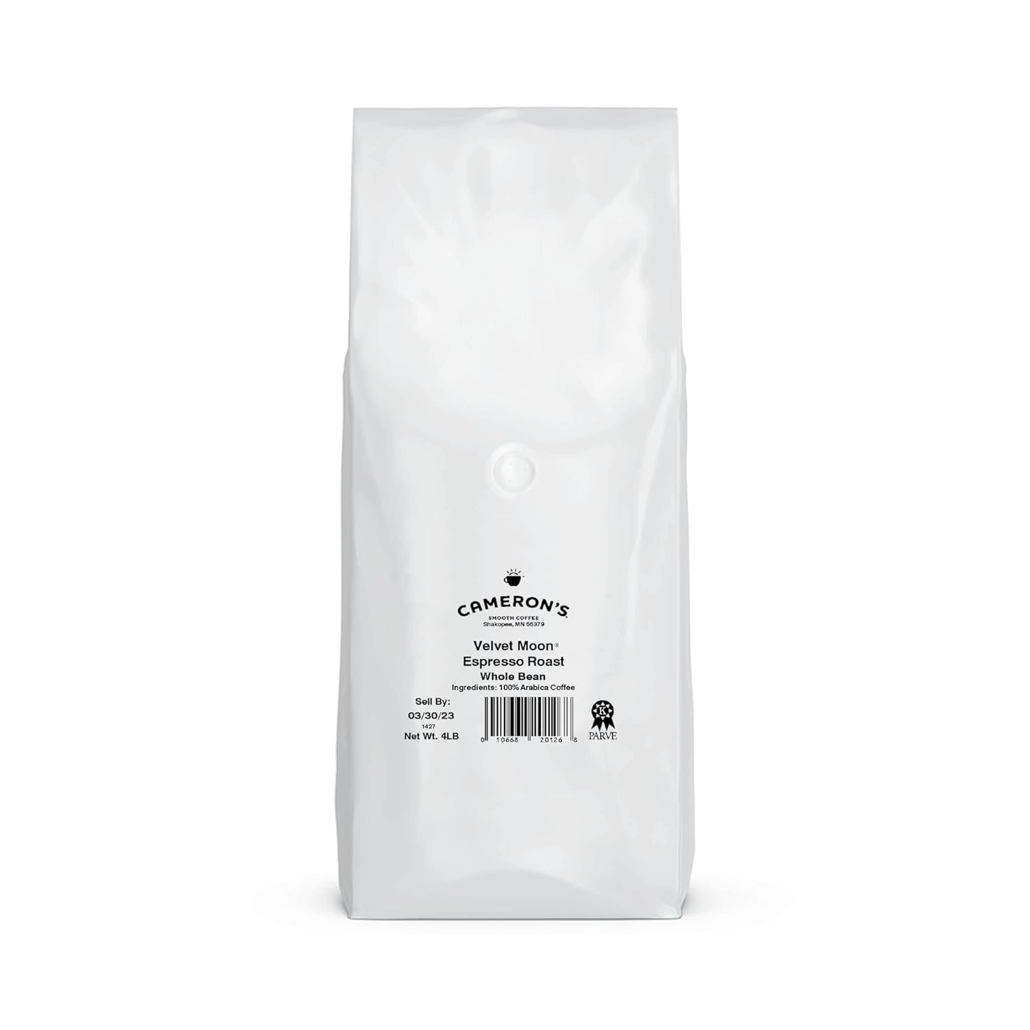 - UNIQUELY HANDCRAFTED COFFEE: One, four pound bag of Cameron’s Velvet Moon Espresso Roast. We craft Cameron's Coffee to be the smoothest, most flavorful coffee possible. Our coffee is sustainable, hand-crafted, and small-batch roasted.