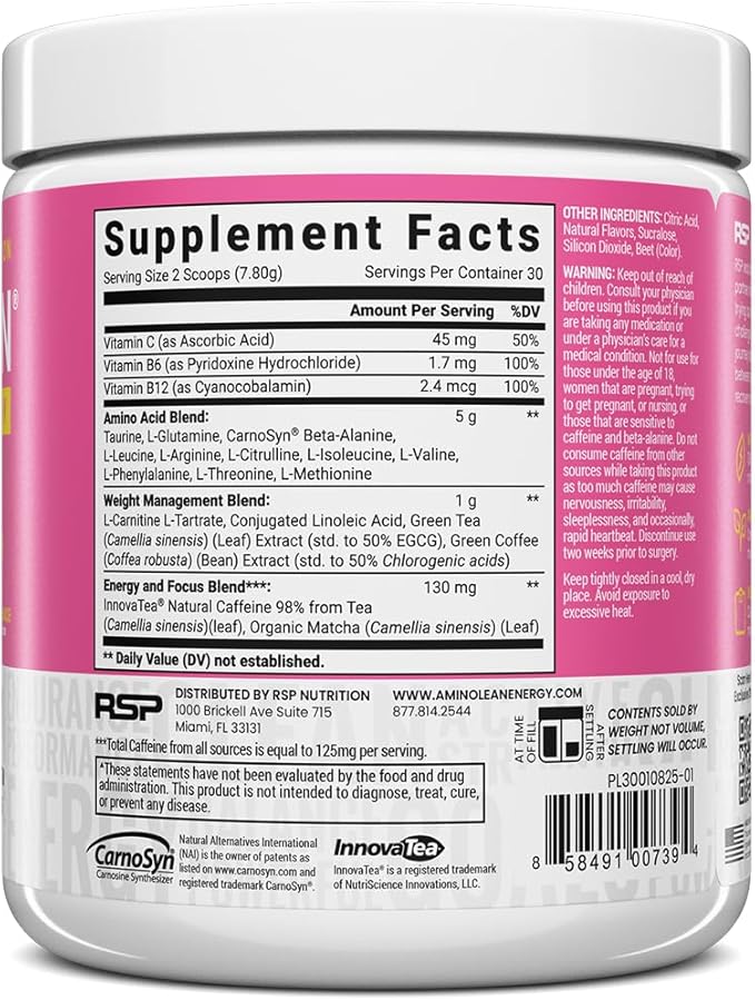 RSP NUTRITION AminoLean Pre Workout Powder, Amino Energy & Weight Management with Vegan BCAA Amino Acids, Natural Caffeine, Preworkout Boost for Men & Women, 30 Serv, Pink Lemonade…