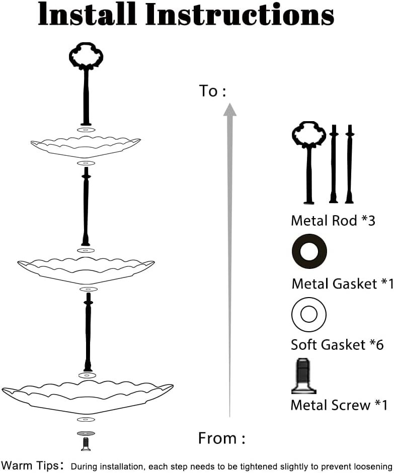 - The 3-tier of design serving tray, not only can save space, put more snack desserts, but also make your table clean and tidy. And the unique silver ring bracket design shows charm, which can be carried and moved more conveniently.