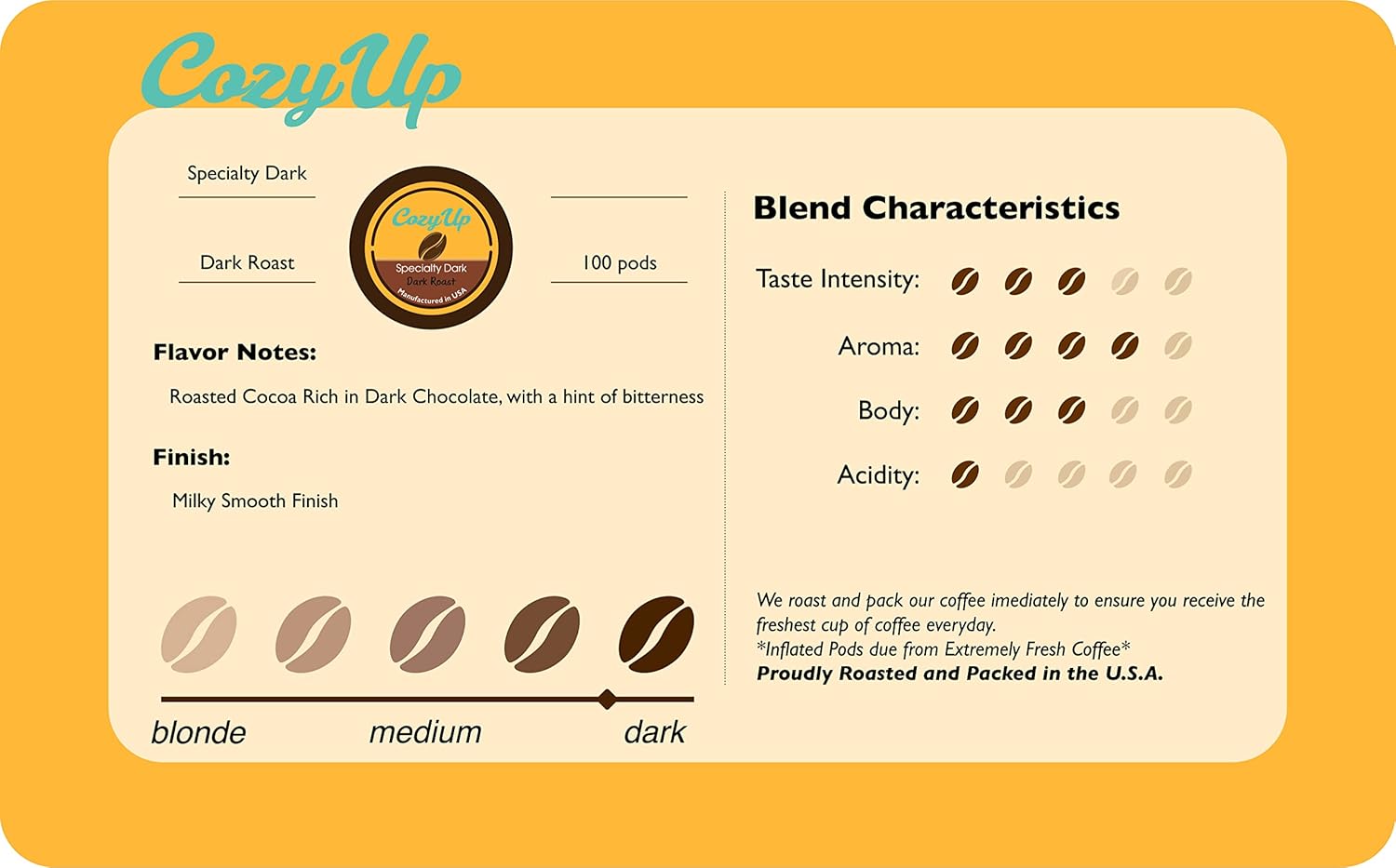 Cozy Up | 100-Count | Specialty Dark Single-Serve Coffee Pods Compatible with Keurig K-Cup Brewers | Dark Roast Coffee