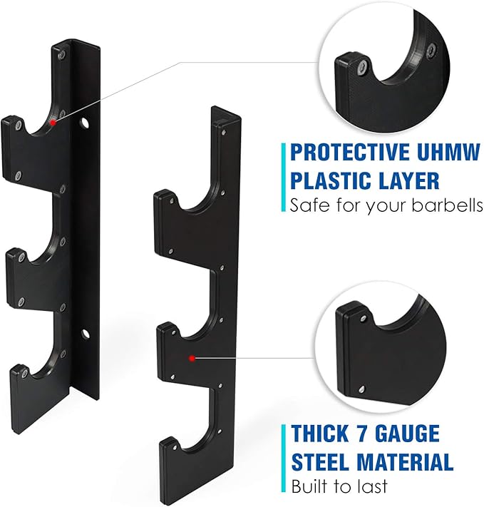 - HEAVY STEEL CONSTRUCTION: No more worries about falling bars, our bar rack storage is constructed of 7-gauge steel for the most durable bar rack you can find. Steel bar rack is covered with black powder finish to prevent rust & corrosion