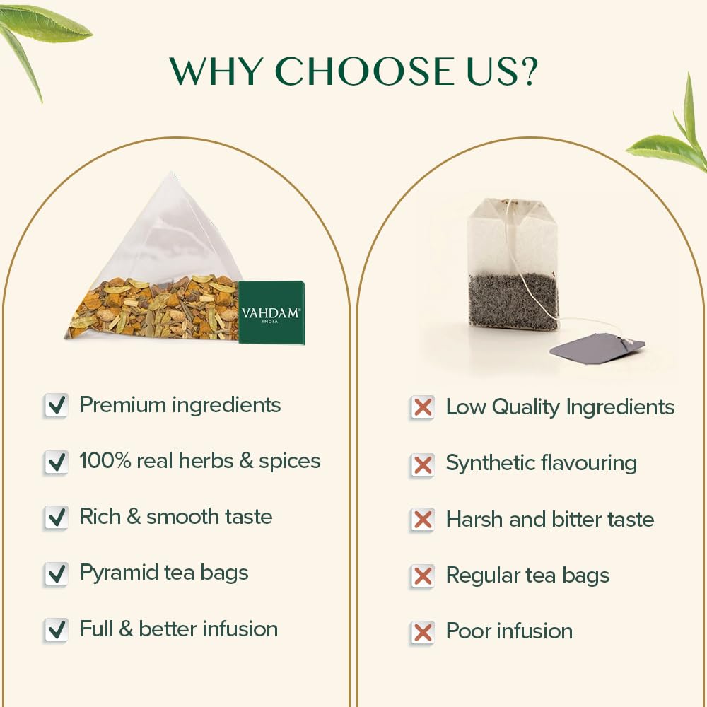 VAHDAM, Turmeric Spice Herbal Tea Bags (100 Pyramid Tea Bags) | Caffeine Free, Non GMO & Gluten Free | Turmeric Ginger Tisane with Cardamom, Cinnamon, Lemongrass & Black Pepper