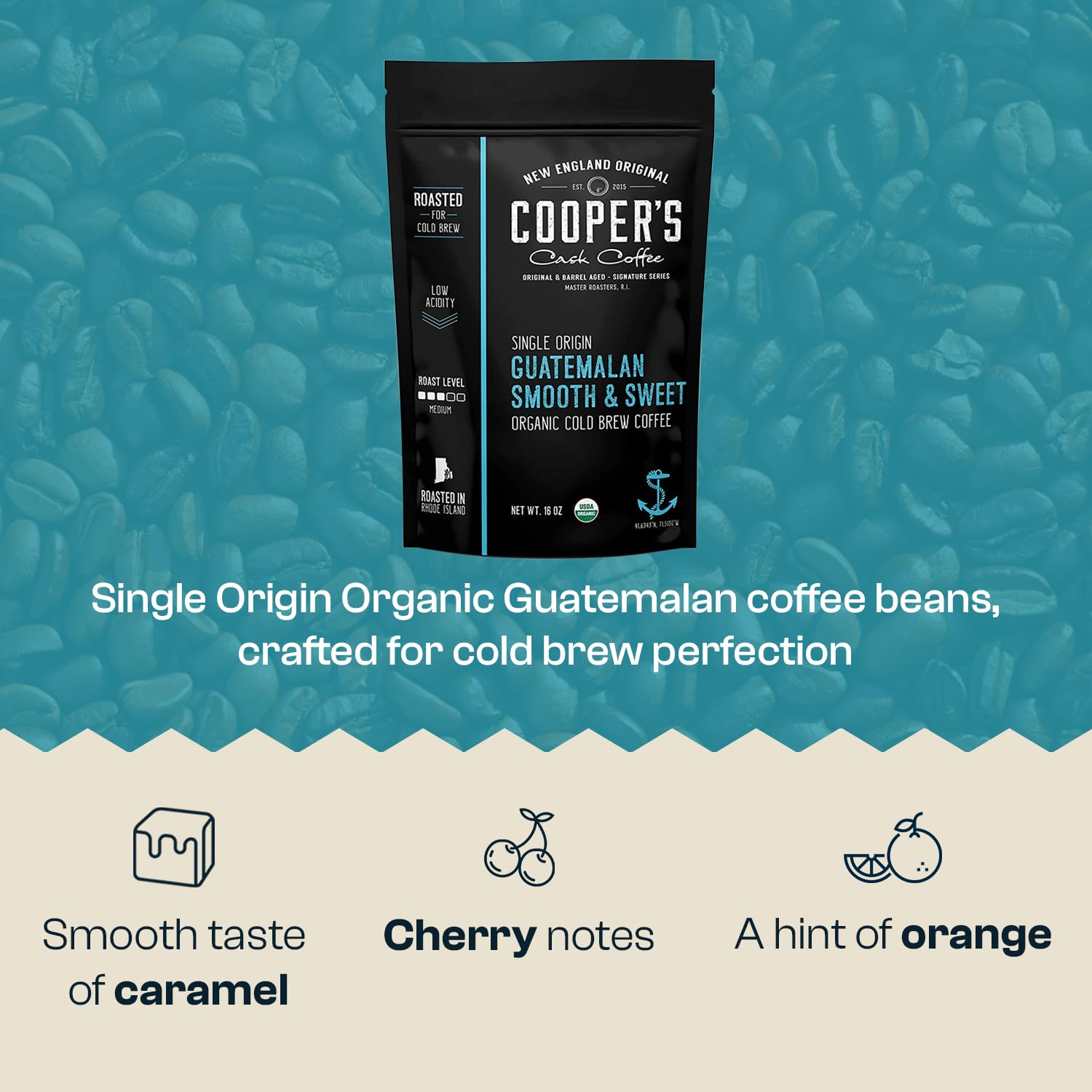 Organic Cold Brew Coffee - Guatemalan Coffee Beans Crafted For Cold Brewing - Whole Bean, Medium Roast, 16oz (Whole Bean)