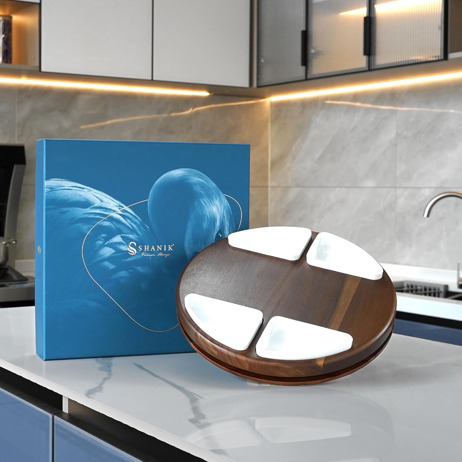 - Elevate Your Entertaining Experience: This Shanik Lazy Susan charcuterie board, crafted from premium Acacia wood, acts as the perfect centerpiece for any gathering, providing an elegant and functional platform to serve an array of cheeses, meats, and more. Immerse friends and family in a world of flavors with easy access and effortless spin, making hosting easy and luxurious.