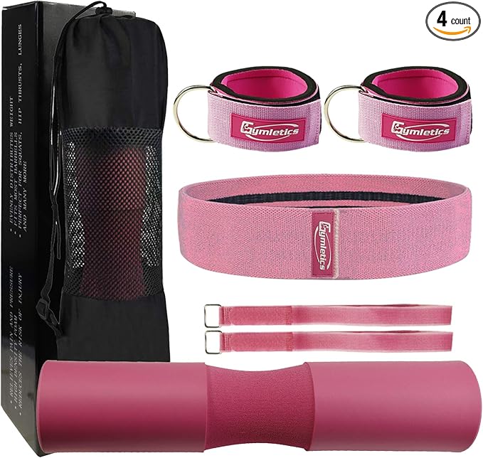 - <b>PINK BARBELL SQUAT PAD SET:</b>Squat pad for weight bar for women with Safety Straps ,Pair of Gym Ankle Straps for Cable Machines,Resistance Workout Hip Exercise Bands,Carry Bag can easy carry all workout accessories to any other place.