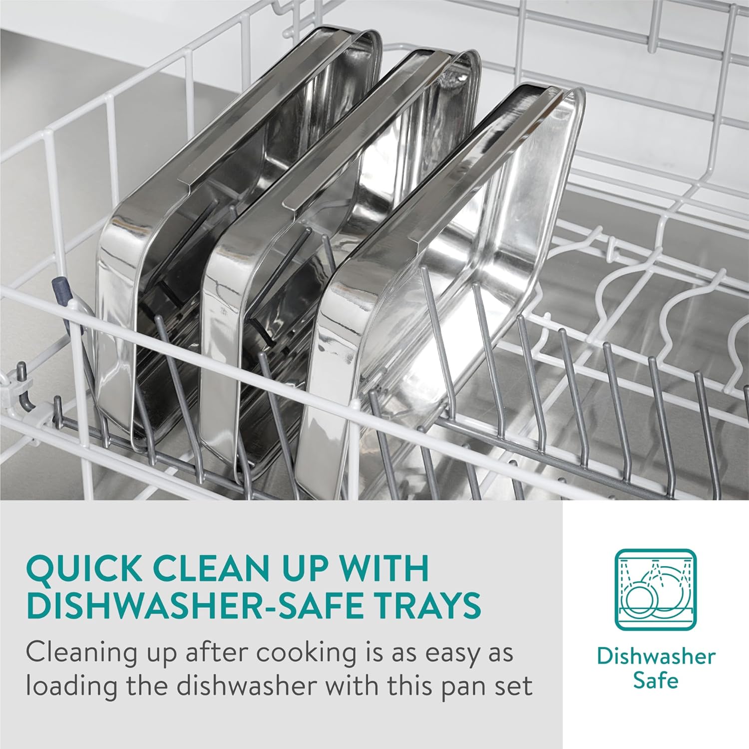 - Stainless Steel Tray: Made of 100% stainless steel and plastic/BPA-free, this small baking tray set is perfect for prep in the kitchen, or as a breading station, dipping, marinating, heating, roasting and serving