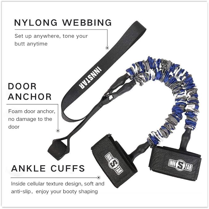 - ★EASY TO USE - INNSTAR hip resistance band can be used in the sitting position in a chair or standing. Just place door anchor under door/close it and you can start your glute training!