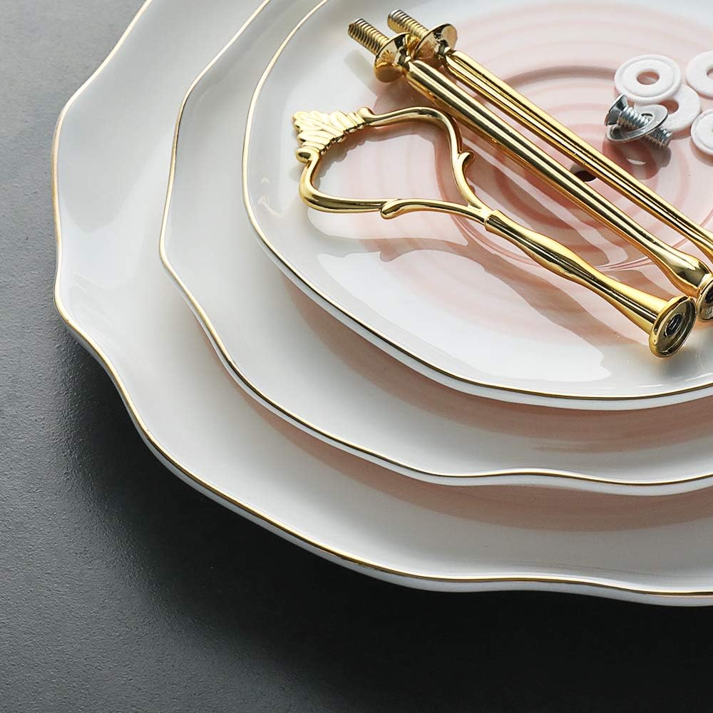 - Gorgeous 3 Tier Stands: This layered cake rack has an irregular and elegant shape. The porcelain is of good durability, the golden pillar echoes the Phnom Penh and is full of texture.