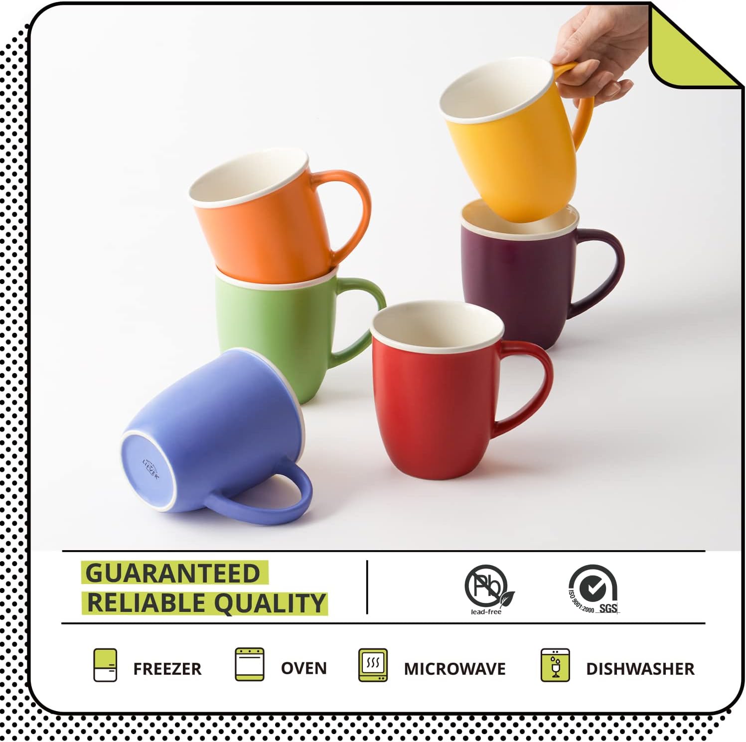 - Microwave and Dishwasher Safe: These colorful ceramic large coffee mugs are made of durable ceramic, lead-free, cadmium free, and safe non-toxic, you can rest assured use in microwave, dishwasher, oven or freezer.
