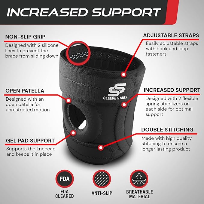 - ✅ Re-designed for your comfort. This knee brace for meniscus tear have an open knee cap that is designed to relieve stress in the knee area, allowing you to enjoy your daily activities and hobbies without compromising your mobility. These knee braces for knee pain prevents displacement and guides the knee cap into proper motion.