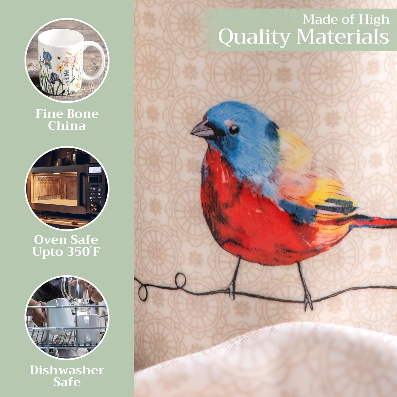 Maison d' Hermine Coffee Mug with Handles Fine Bone China Mugs Pack of One Tea Cups for Hot Beverages Cappuccino Latte Home Restaurant Office Perfect for Gift (Birdies On Wire - Robin, 12 Ounce)