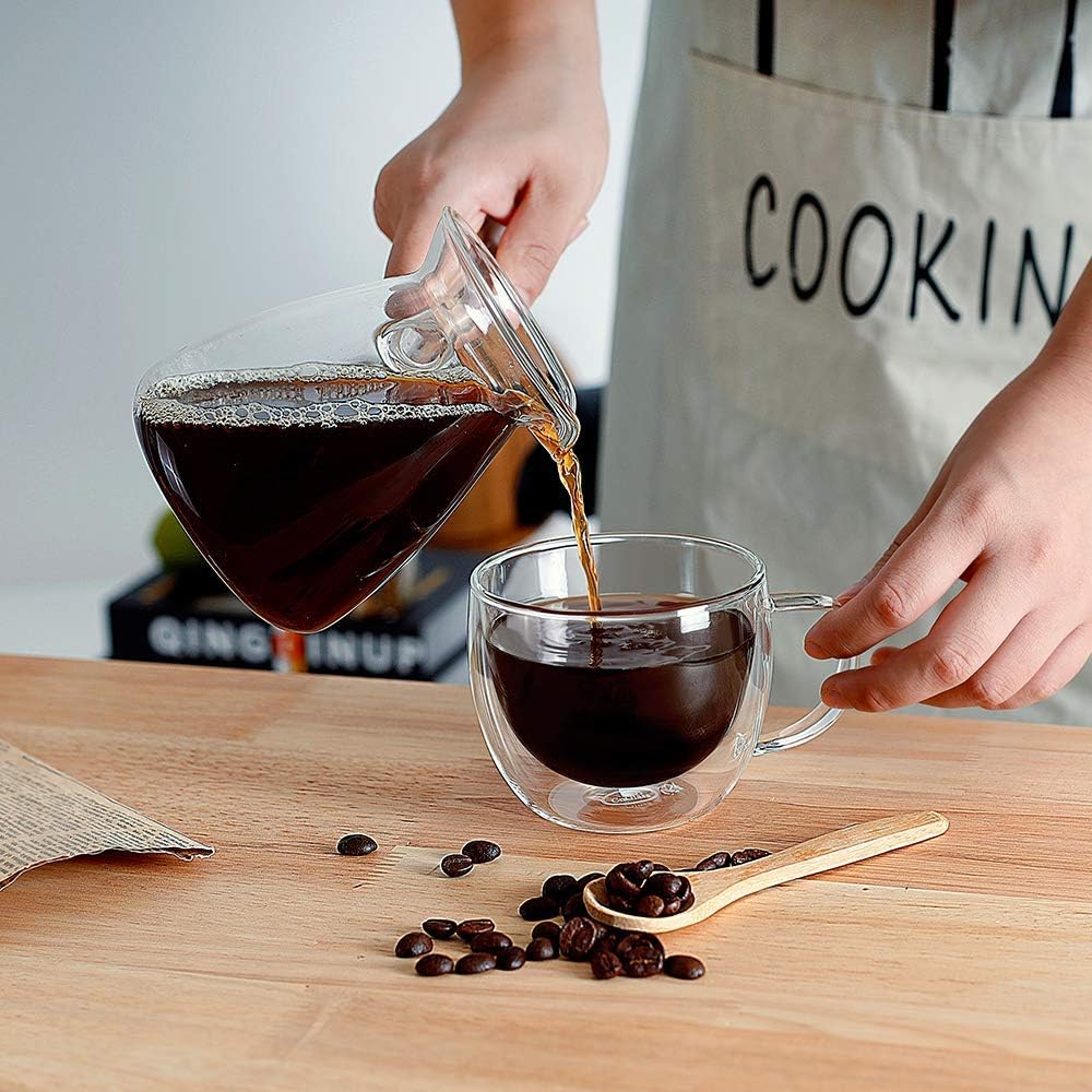 - KEEPS YOUR COFFEE HOT FOR LONGER:Double walled,hand blown glass insulation keeps your coffee hot and your hand cool.No sweat! Also works great for your favorite icy cold drink.