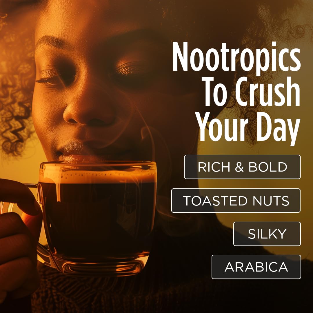 - BOOSTED ENERGY: The coffee is expertly infused with a powerful nootropic, double caffeine from green coffee beans, and essential vitamins to sharpen your body and mind.
