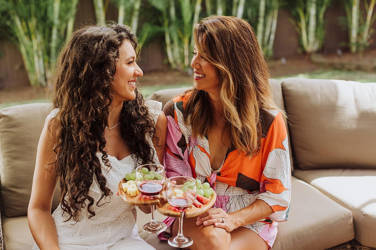 - CHEESE BOARD STEADY - Made of stylish acacia wood, each plate with wine holder features a built-in ridge around the perimeter to help stabilize your small bites