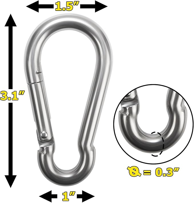 - 💪COMPACT DESIGN: Set of 4 - 3.1" x 1.5" Stainless Steel snap hook. It can be used with one hand. Snap hook lock gate prevents items from unwanted detachment.
