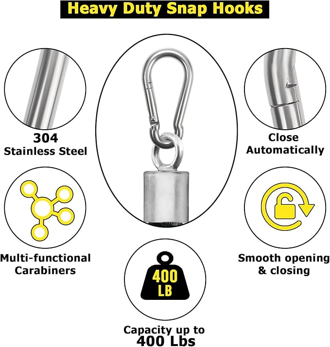 - 💪MADE TO LAST: The premium spring snap hook is made with 304 STAINLESS STEEL that protects against corrosion