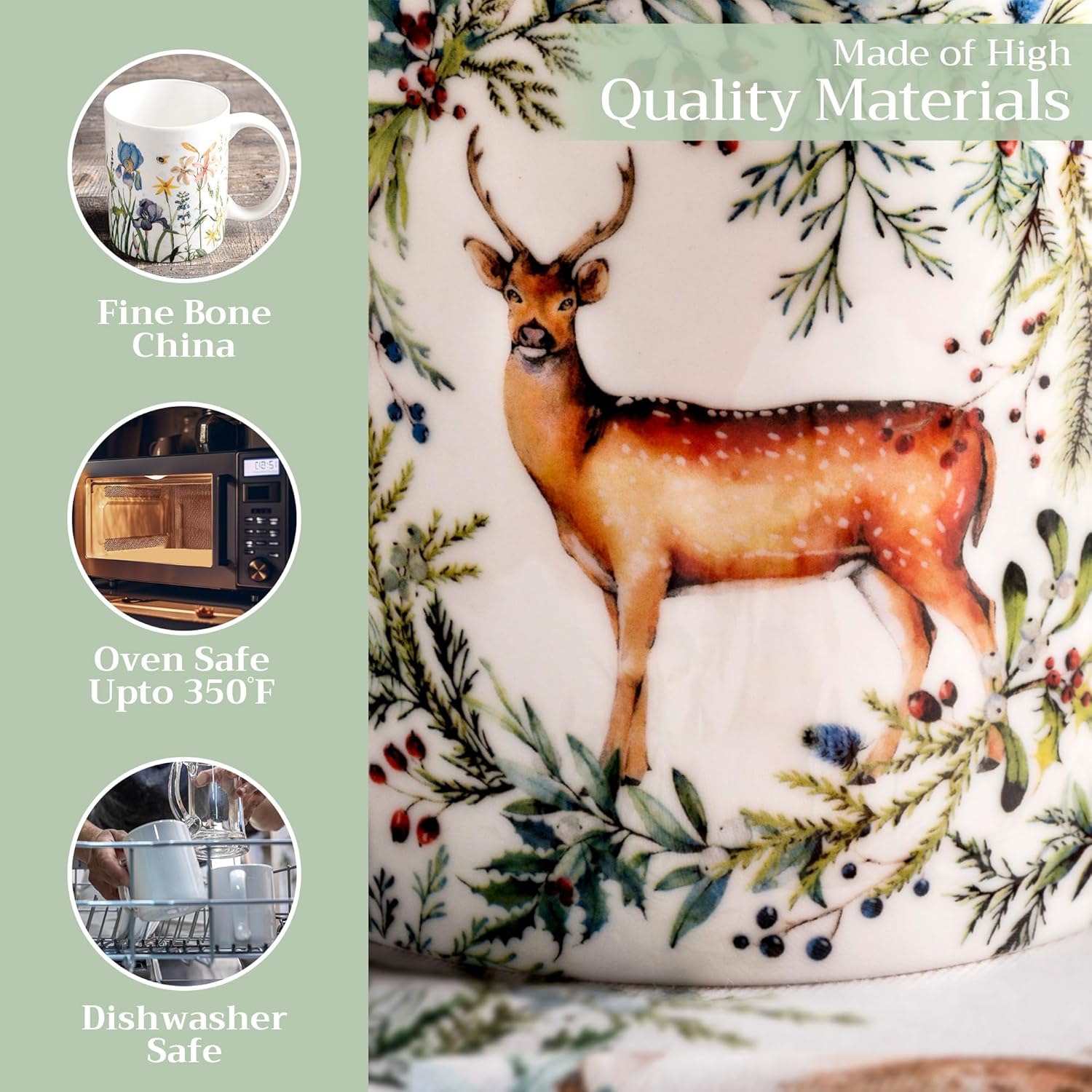 Maison d' Hermine Coffee Mug with Handles Fine Bone China Mugs Pack of One Tea Cups for Hot Beverages Cappuccino Latte Home Restaurant Office Perfect for Gift (Holly Time - Biche, 12 Ounce)