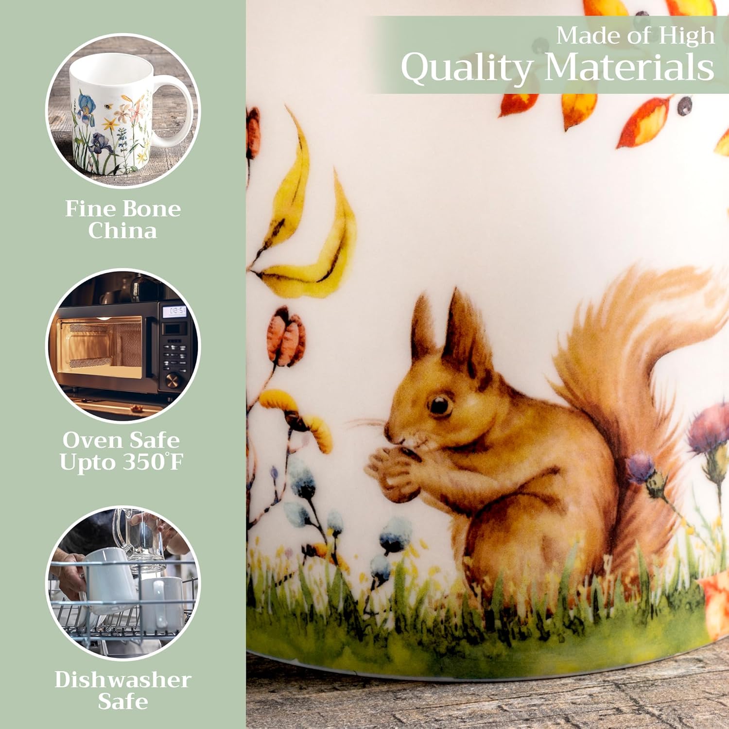 - Easy Care & Maintenance: Microwave, dishwasher, and oven safe up to 350°F. These bone china mugs are built for convenience and durability, making cleanup and reheating simple without compromising on quality