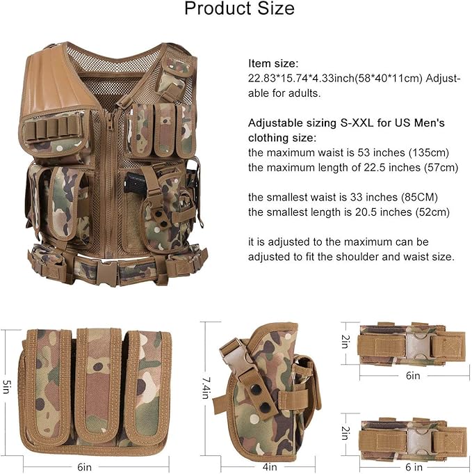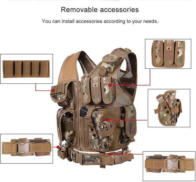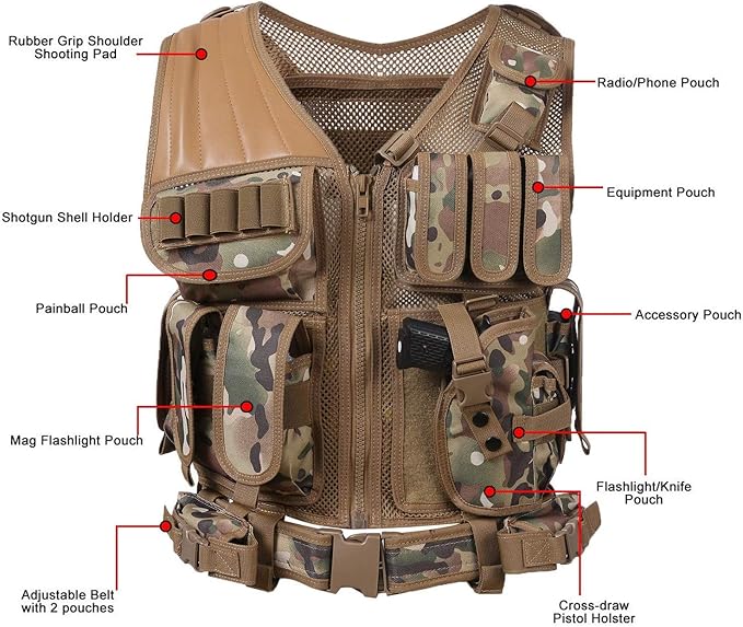 - With a large number of removable pouches, shackles, drain holes and flexible insertion system, you can easily play with CS and airsoft paintball games.