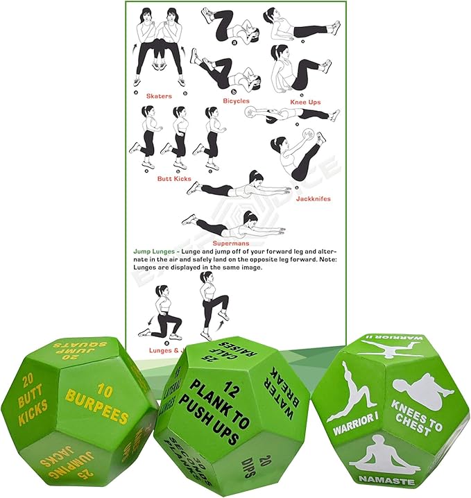 - ✅ FUN FOR THE WHOLE FAMILY! Great way to motivate and bond with family & Friends. Our EXER-DICE have a detailed exercise manual with illustrations to ensure that the whole family will have fun with the easy to follow workouts. Whether you’re at home, beach, or park our mesh carrying bag allows you to take the dice anywhere! A great and easy way to get adults and kids off that couch and moving towards better health.