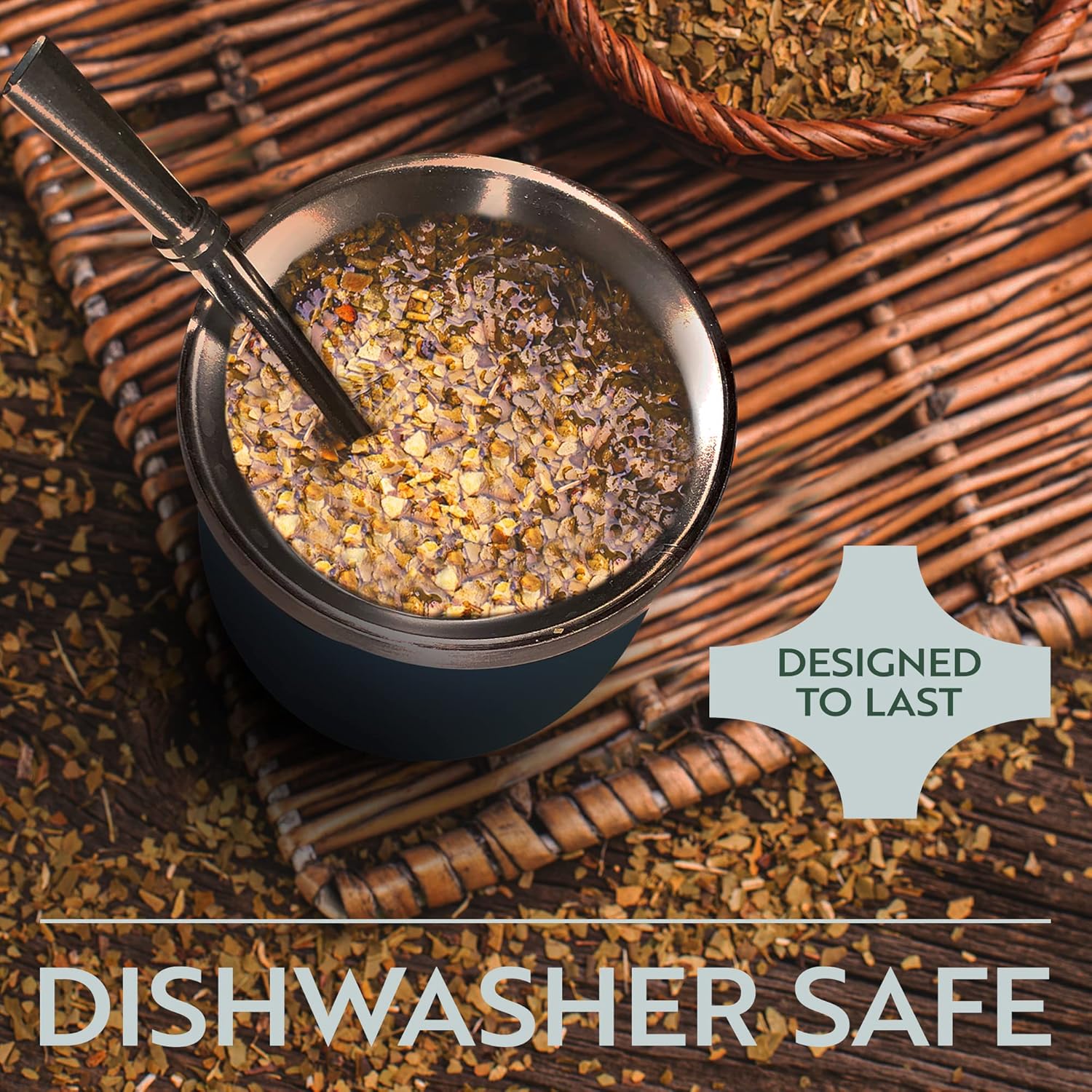 - High- Quality & Elegant Design: Each stainless steel yerba mate cup set includes 1 elegant, clog-resistant bombilla (straw), 1 flat bombilla, and 1 cleaning brush. BPA-free and designed for daily use, this yerba mate insulated cup is perfect for seasoned drinkers or as a thoughtful gift for anyone exploring yerba mate tea.