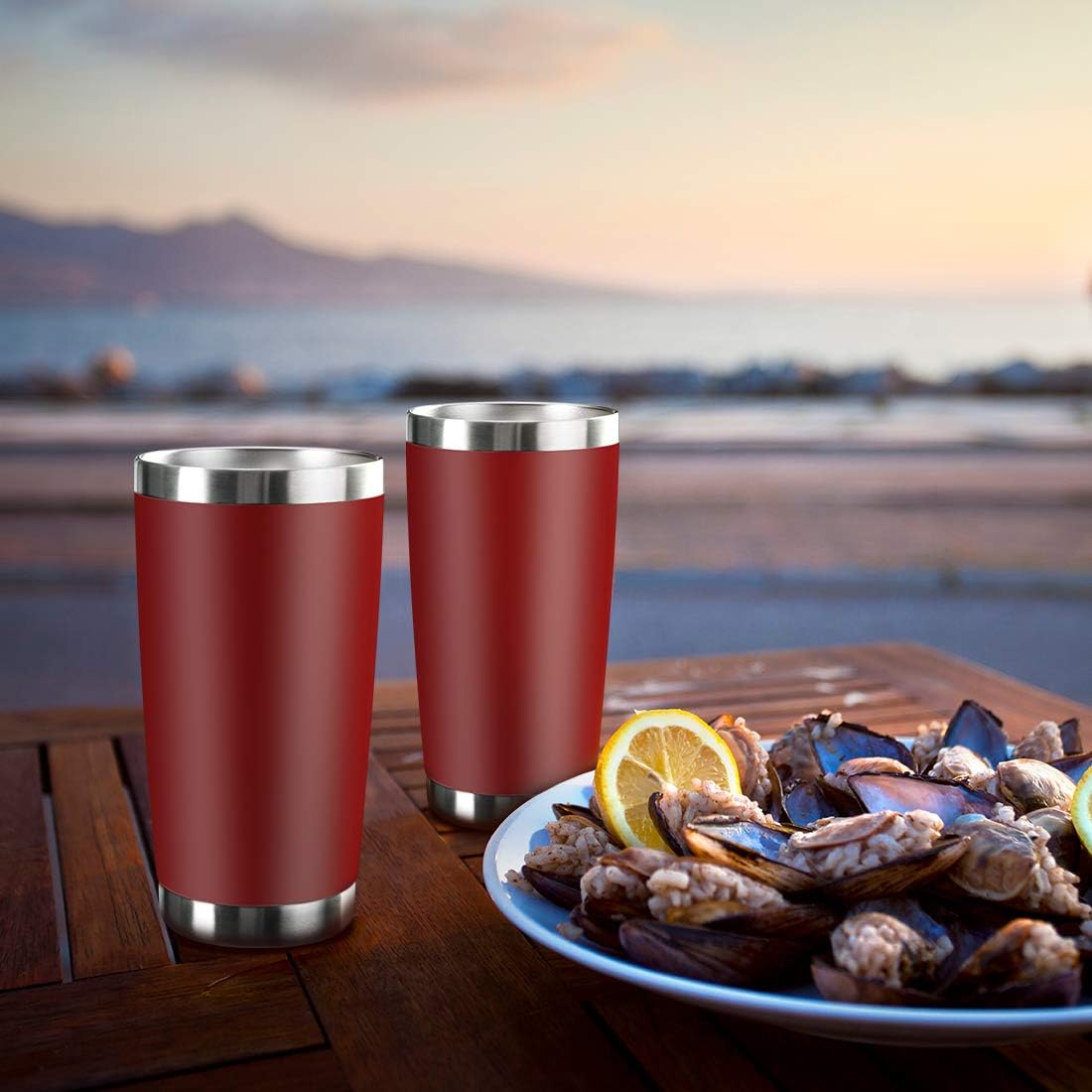 20oz Tumbler Bulk Stainless Steel Vacuum Insulated Tumblers with Lid Double Wall Travel Mug, Durable Powder Coated Coffee Cup, Suitable for Ice Drinks and Hot Beverage (Red 6pack)