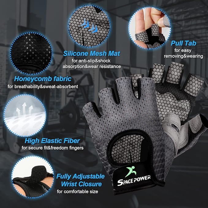 spacepower Workout Gloves - Lightweight Breathable Gym Gloves for Women & Men's Exercise