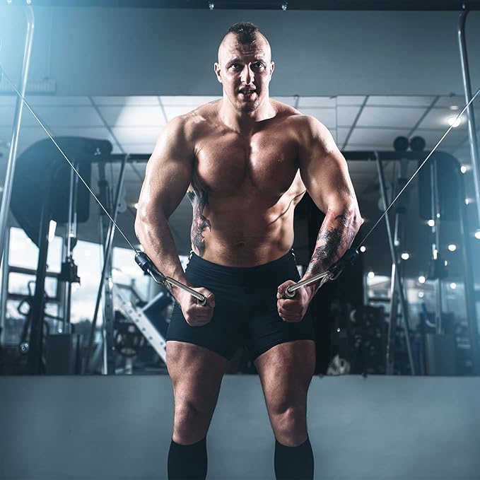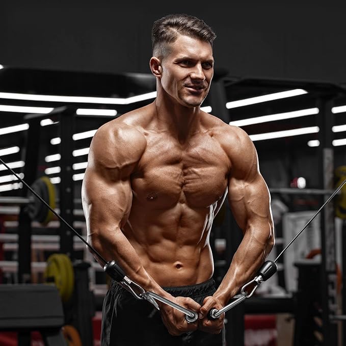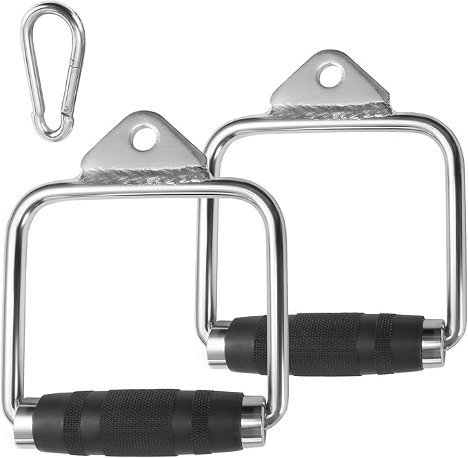 - 💪MULTI-FUNCTION WITH RUBBER HANDLE: Ideal for developing your triceps, biceps, back, shoulders, abs and improving your grip strength. D Handles give you great grip, allow you to move more weight, and help you perform each rep with beautiful form and allows you to exercise two arms at once