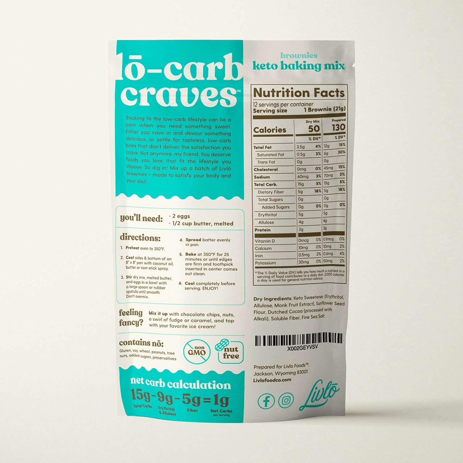 - The no cheat treat. Finally, keto brownies that don’t compromise taste or quality. Livlo chocolate fudge brownies are choc full of gut healthy fiber and are proudly made in the USA with high quality sugar free, gluten free, grain free, nut free, IMO free, soy free, and yes, shame free ingredients so you can end each day feeling great about your food choices, treats included.