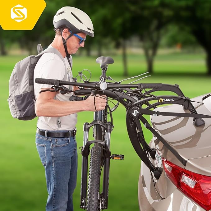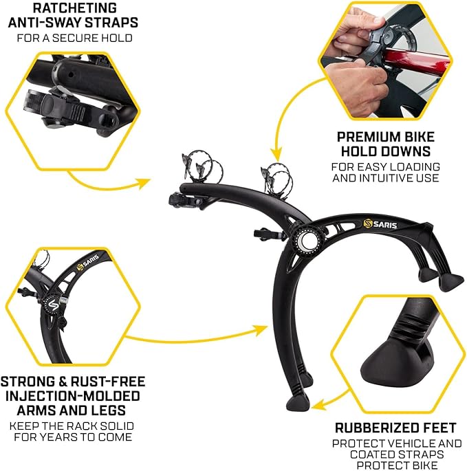 Saris Bones EX 2-Bike Trunk Rack Bicycle Carrier, Durable, Rust-Free, Anti-Sway Straps, Made in USA, Arc-Based Design, 100% Recyclable Materials