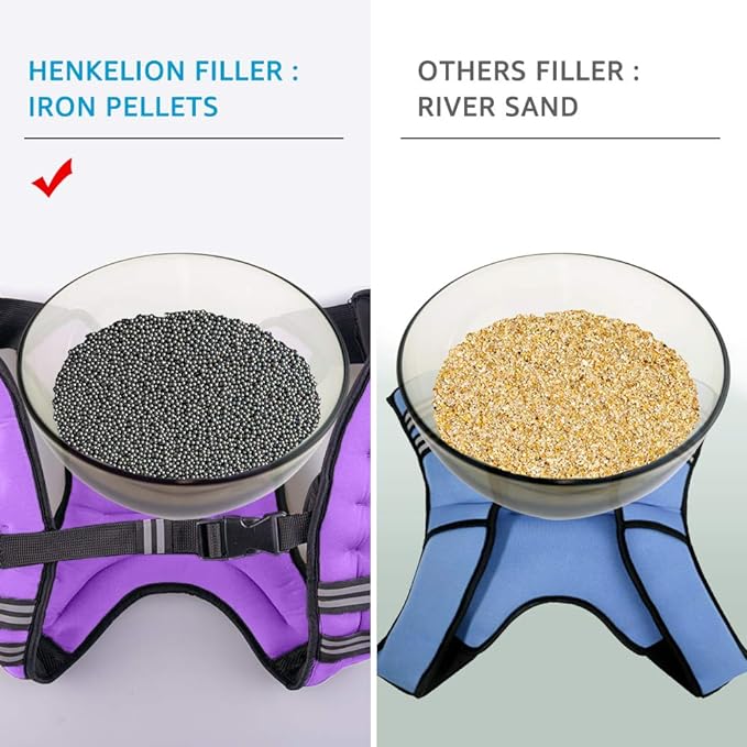 - IRON PELLETS & METAL ROCK - Henkelion weighted vest is filled with premium iron pellets and metal rock rather than using cheap river sand