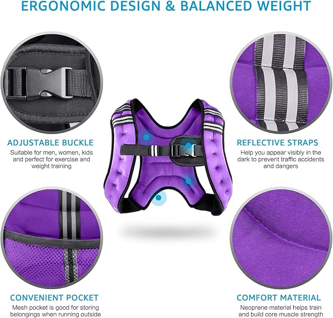 - ERGONOMIC DESIGN & BALANCED WEIGHT - This weight vest is distributed weight throughout your body, including an adjustable strap to prevent slipping and sliding during exercise (WEIGHT NOT ADJUSTABLE)