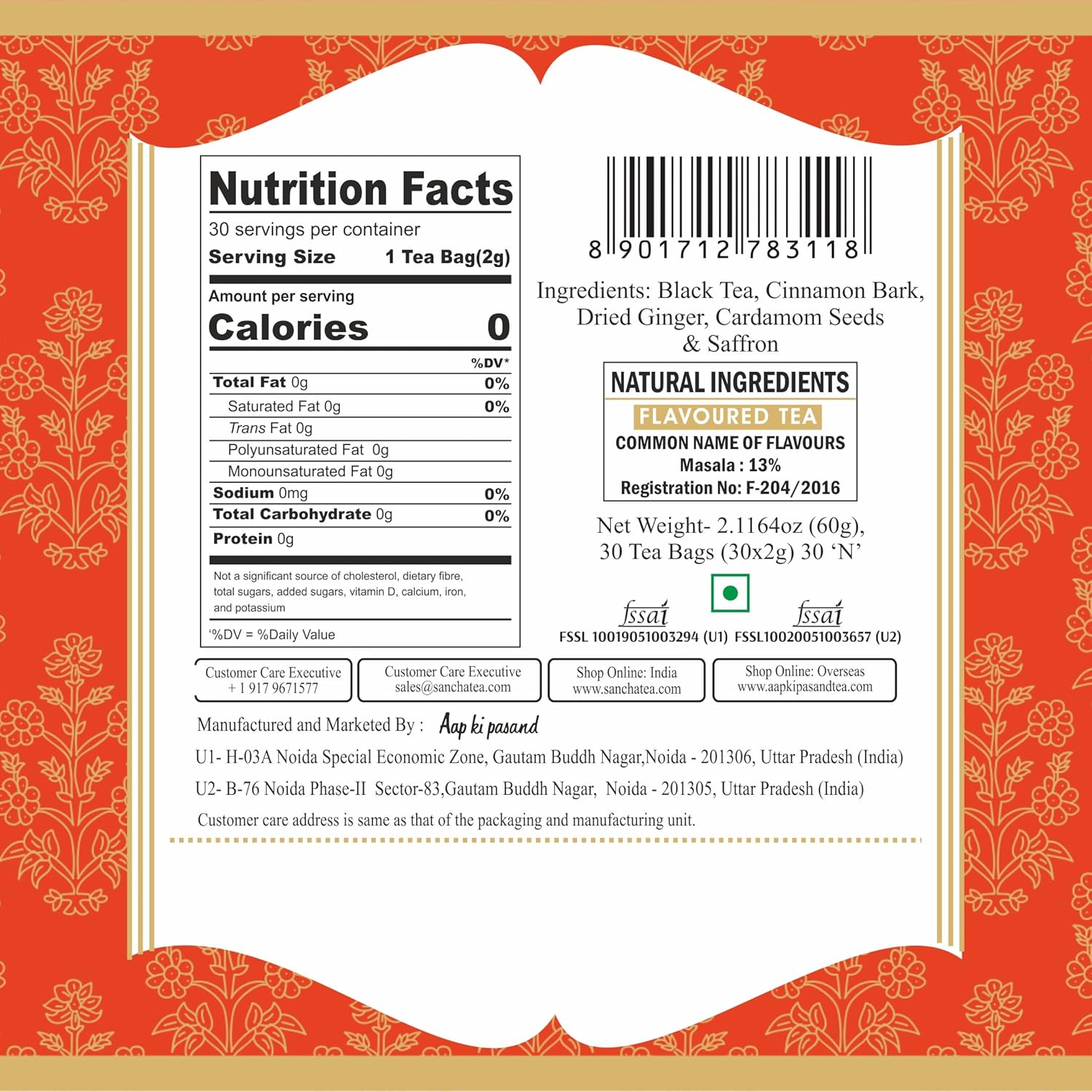 - ✨ Aromatic & Full Bodied – Bold Assam tea balanced with warm saffron notes & creamy spices.