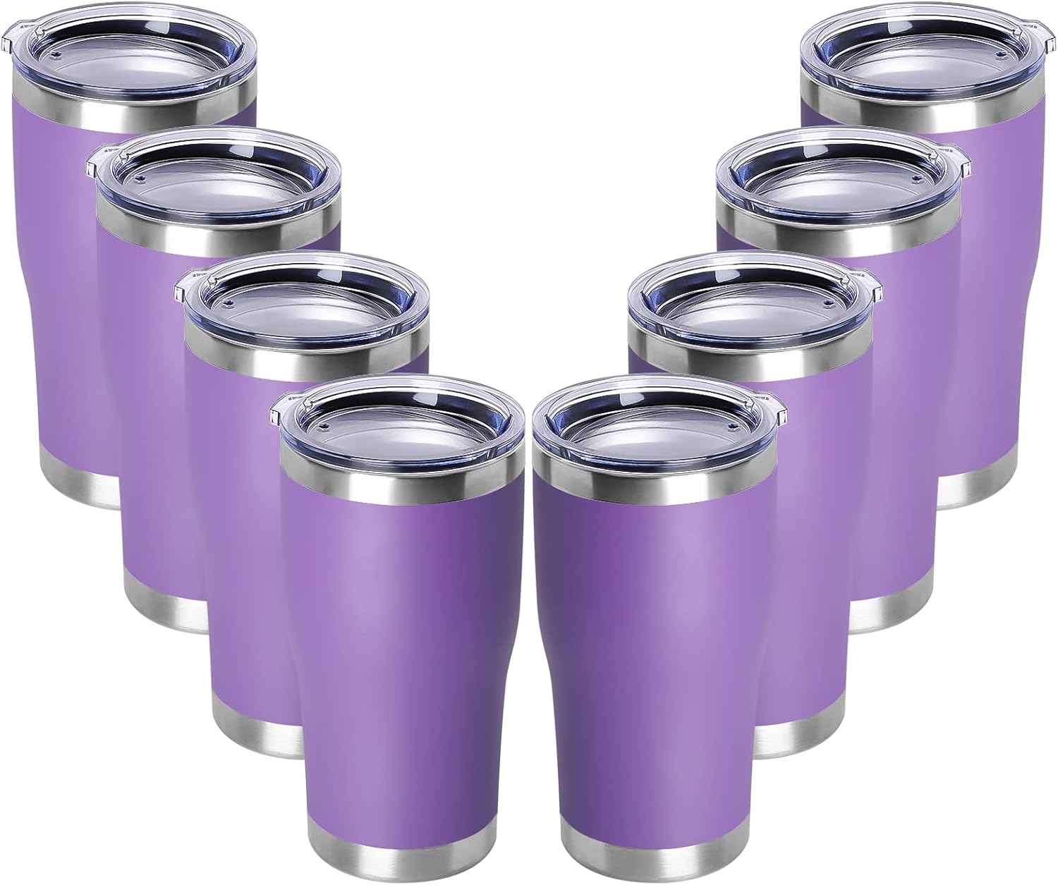 DOMICARE 20oz Tumbler with Lid Stainless Steel Tumblers Bulk, Double Wall Vacuum Insulated Coffee Travel Mug Powder Coated Tumbler, 8 Pack Purple
