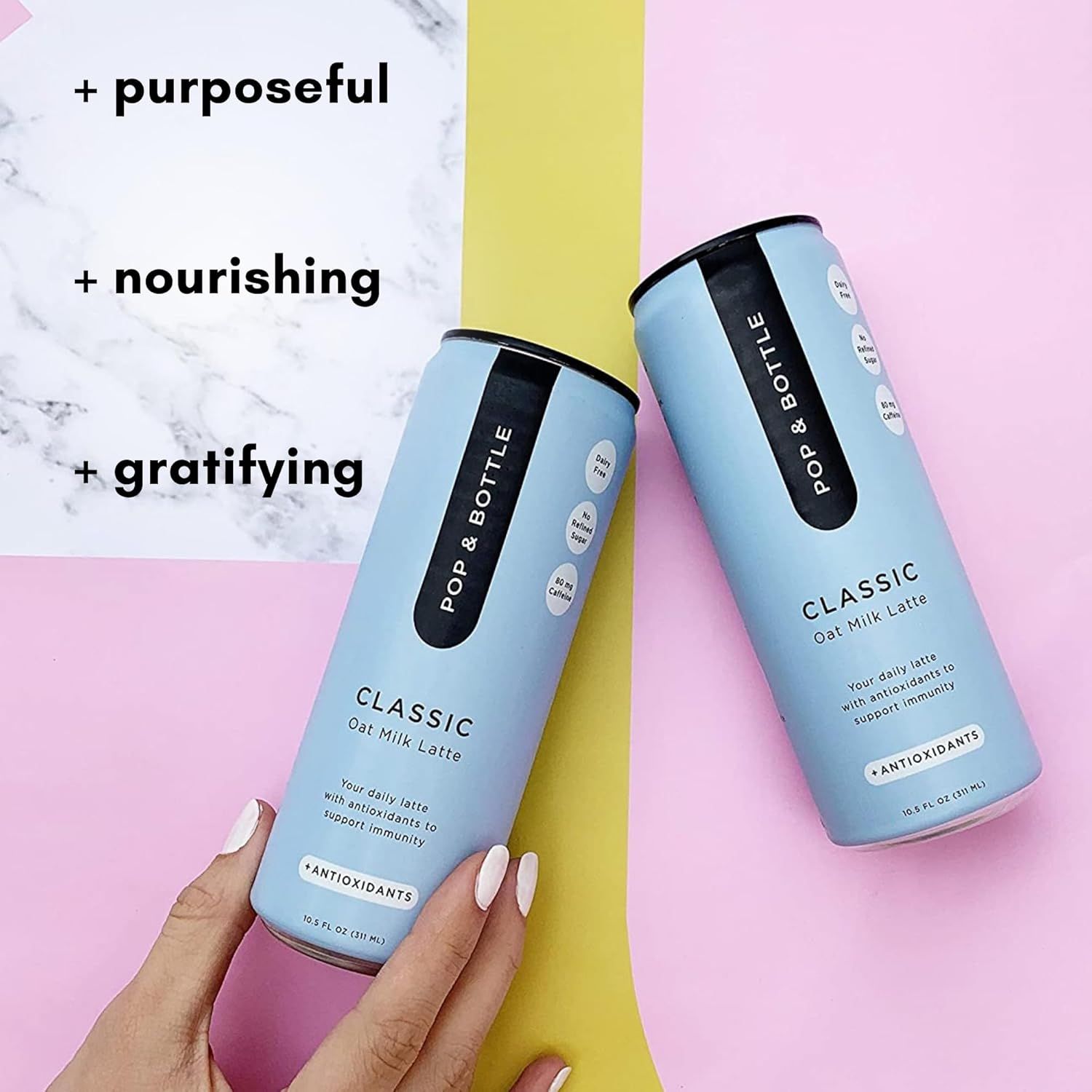 - CANNED COFFEE DRINKS - Pop and Bottle oat milk latte drinks are crafted to help jumpstart your day with organic ingredients & supplements to keep you going while at home or on the go