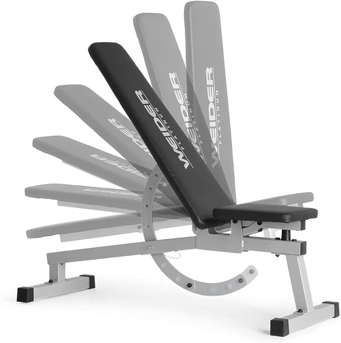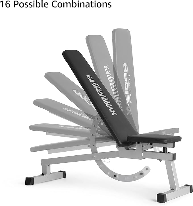 - 16 Possible Positions; Adjust this versatile slant bench between 16 possible combinations to perform a variety of strength-building exercises; Independent chrome safety pin included
