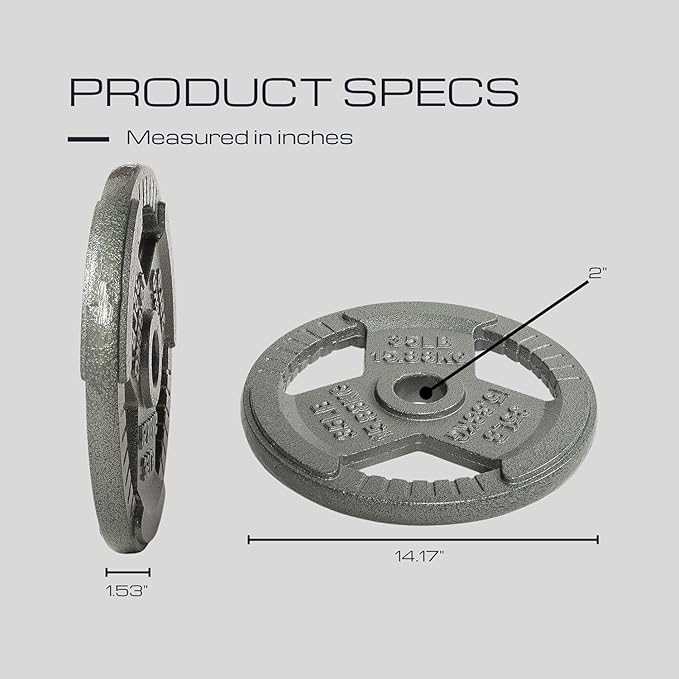- Purpose - Increase overall health and fitness with our multi-grip 1 inch and 2 inch Cast Iron Weight Plates, which is a must have for any home or garage gym set up. Our Cast Iron strength training plates are coated with enamel to help prevent the potential of corrosion and rust.