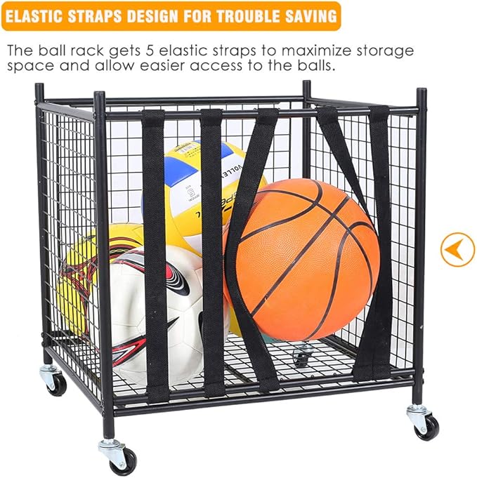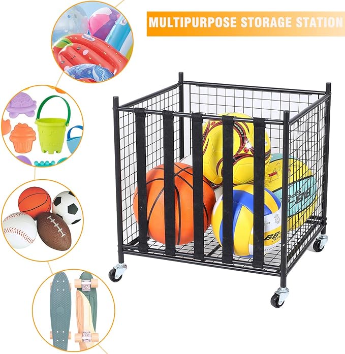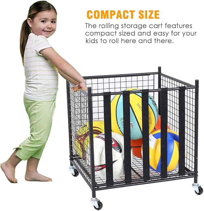 - 【COMPACT SIZE BUT FUNCTIONAL】- The assembled rolling storage cart features 19.69"L x 18.89"W x 21.26"H, which is compact sized and easy for your kids to roll here and there. Besides, it is uniquely designed to hold up to 6 standard sized balls, smart but functional! Remember to measure the place you want to place it to make sure the ball cage could well fit your garage