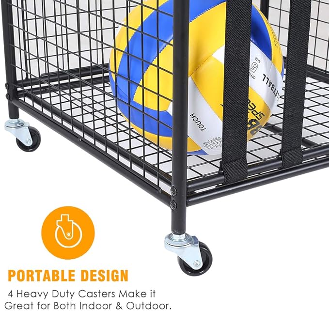 - 【IDEAL SPORTS BALL STORAGE SOLUTION】 - SNAIL Sports Ball Storage Rolling Cart is uniquely designed to hold up to 6 standard sized balls, perfect for basketballs, volleyballs, soccer balls, footballs etc. Features 4 heavy duty casters, the sports ball cage is easy to move anywhere and fits in a specific position. Great for both indoor and outdoor usage